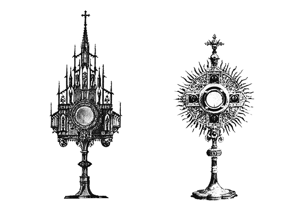 Display the consecrated Eucharistic host for adoration in a magnificent monstrance worthy of contemplating the mystery of Christ.